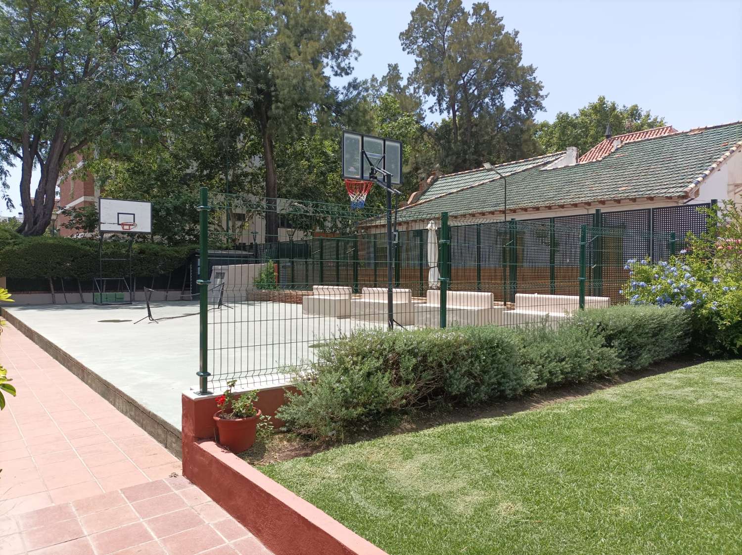 La vivienda está dentro de una urbanización con jardines, piscina y zona para jugar al baloncesto.